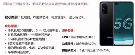 PC制造商早在2020年就開始警惕半導體可能出現的供應緊張問題。其中,以華為為代表的主要智能手機和網絡設備制造商開始囤積芯片。從汽車行業到手機行業,芯片短缺的現狀在逐漸蔓延,手機廠商也開始搶單,華為、小米、OV等在內的手機廠商訂單逐月攀升,囤貨3個月以上是常態,甚至部分囤貨6個月以上的量。